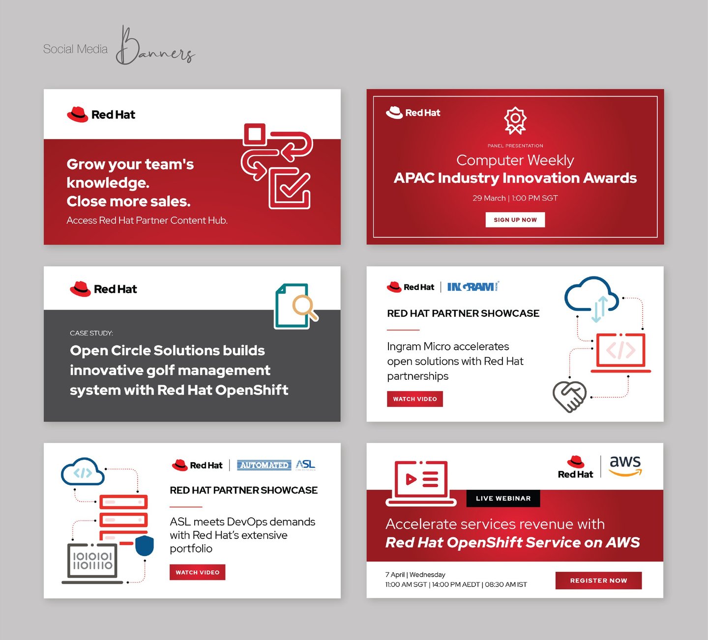 The world’s leading provider of enterprise open-source software solutions needs help for their programme and how Red Hat can contribute for your business. I designed, concepting for all their digital collaterals such as: