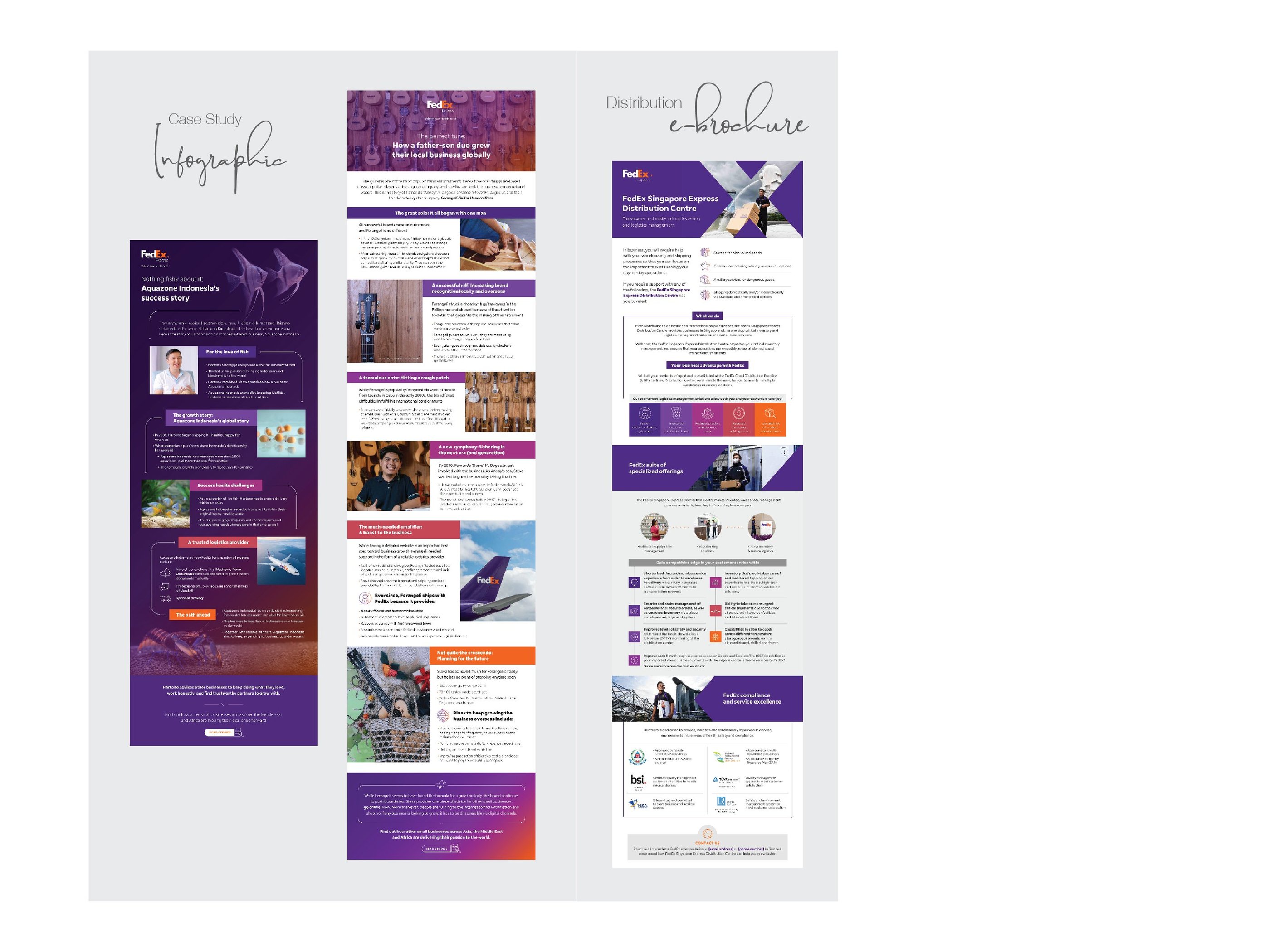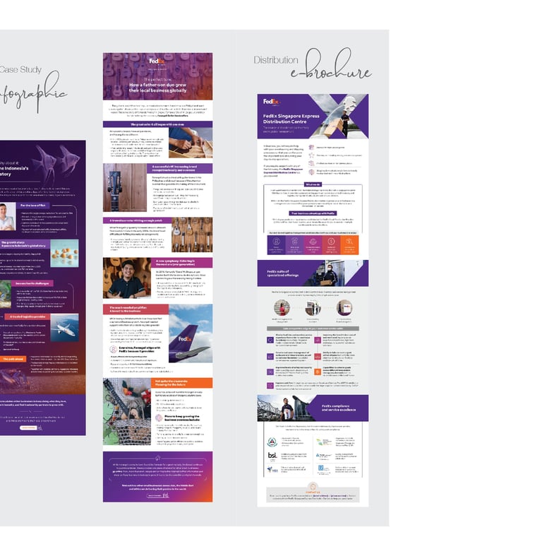 Digital Marketing tools for FedEx Express Singapore. From concepting to finished for infographic series, e-brochure, social media carousel, gif banner ads, thematic infographic, landing page and LinkedIn post.