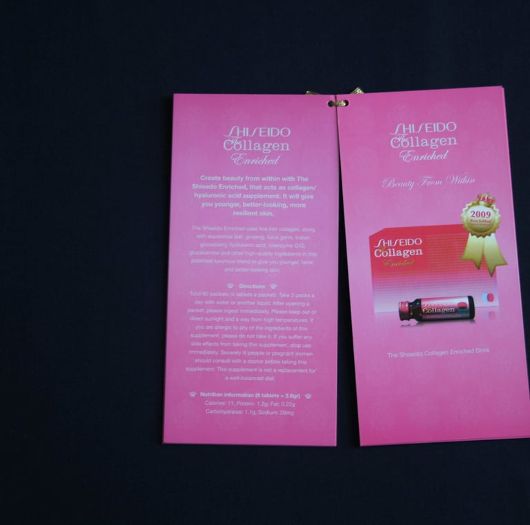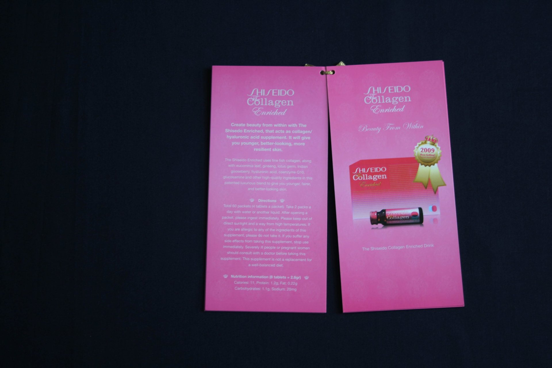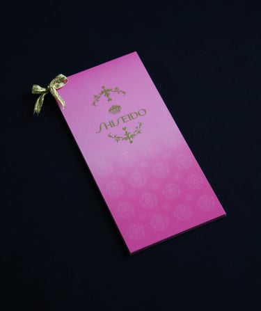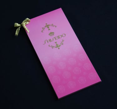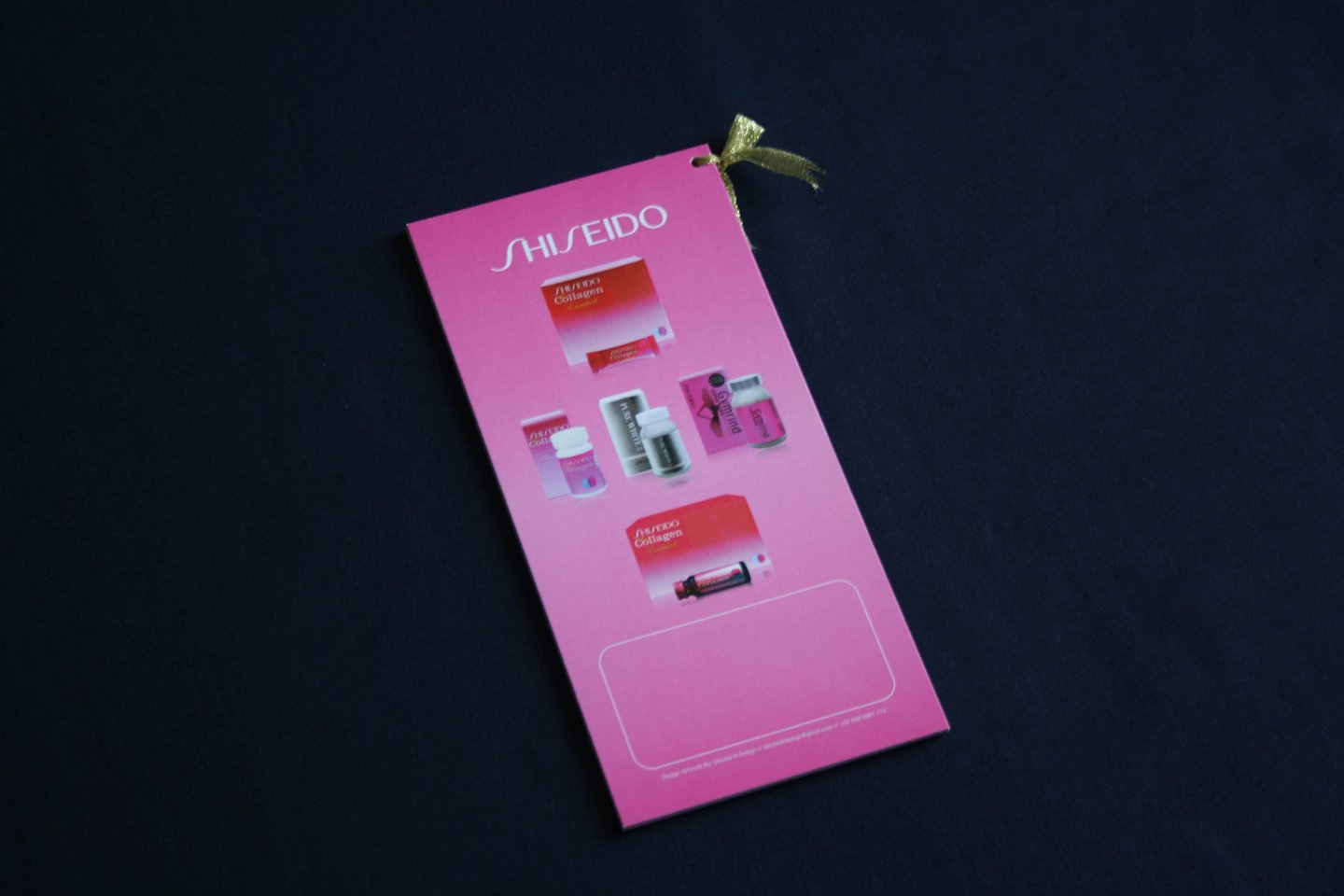 With gold foil, embossed logo and glossy finished, and a sweet ribbon to tie it around, this really elevate the looks and beauty class Shiseido always bring for their audience.